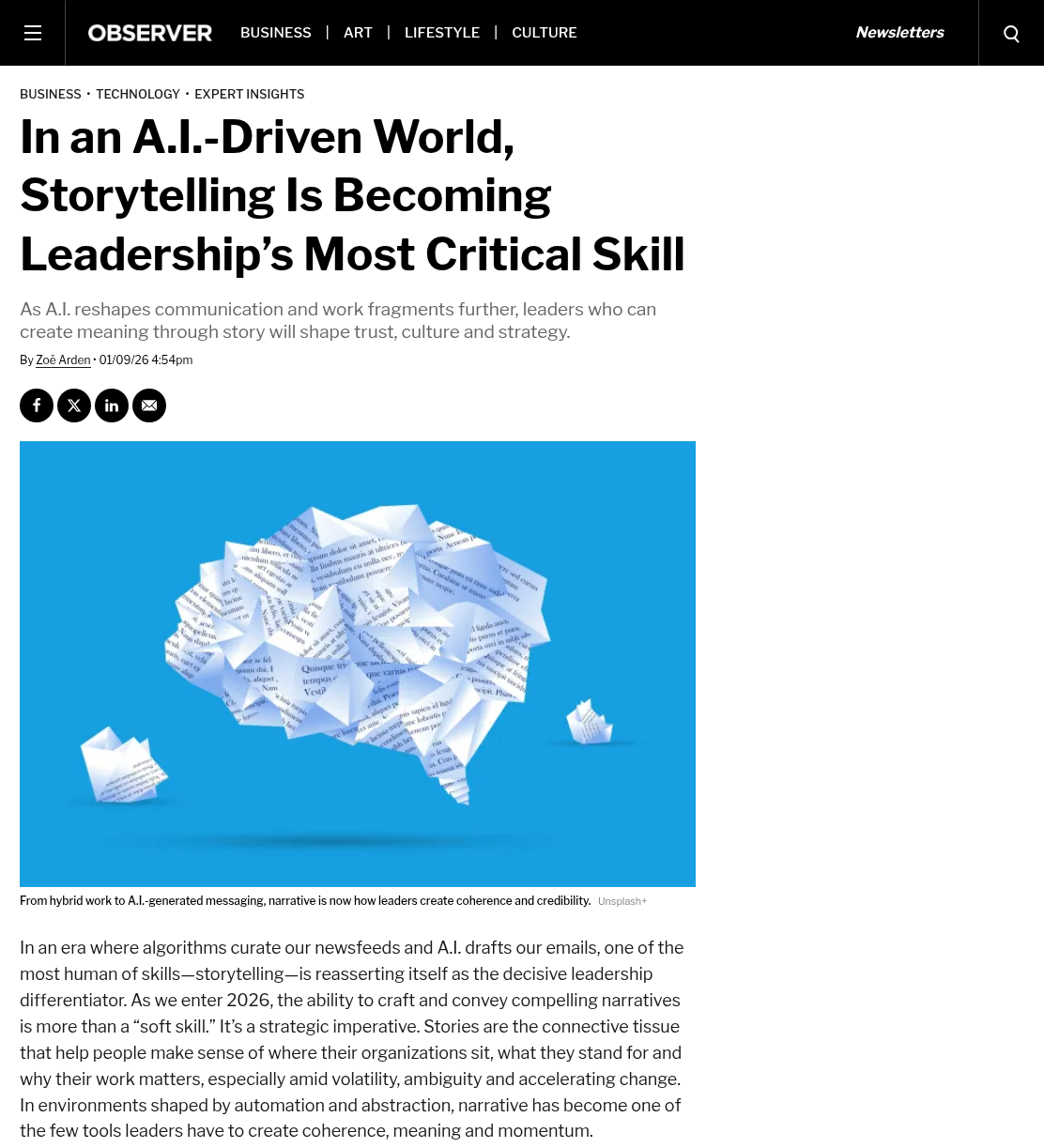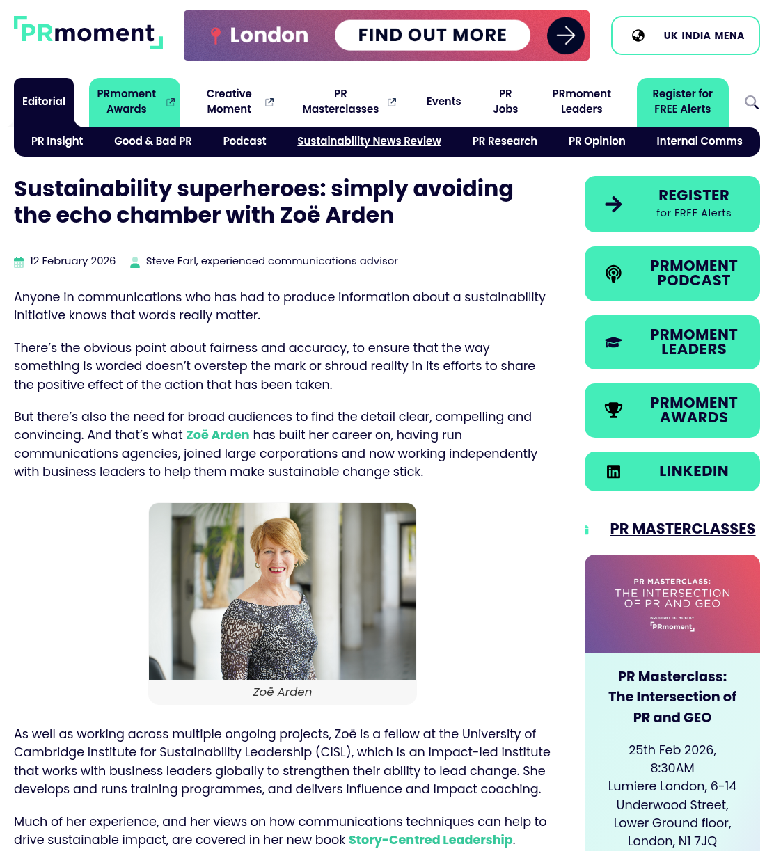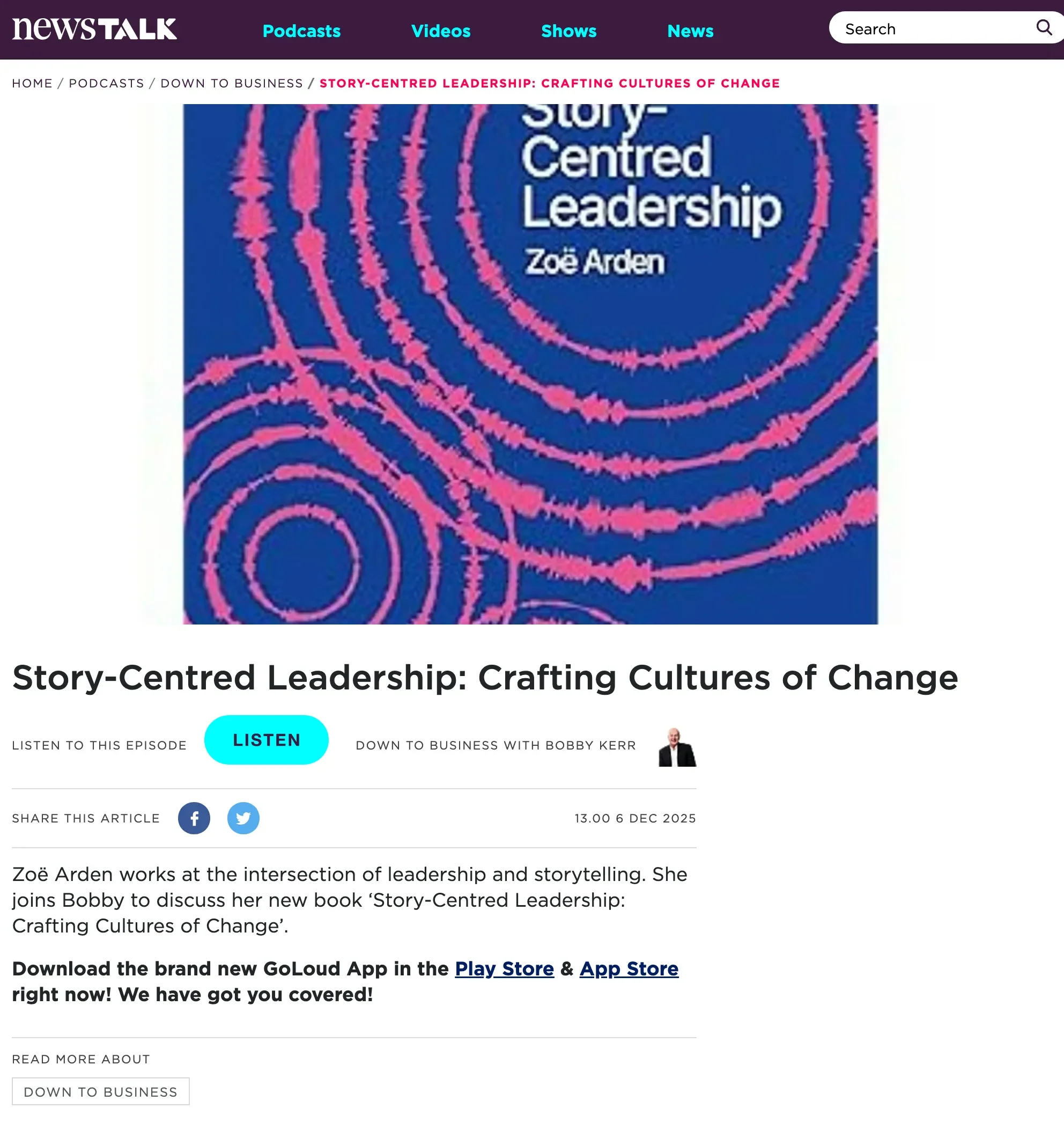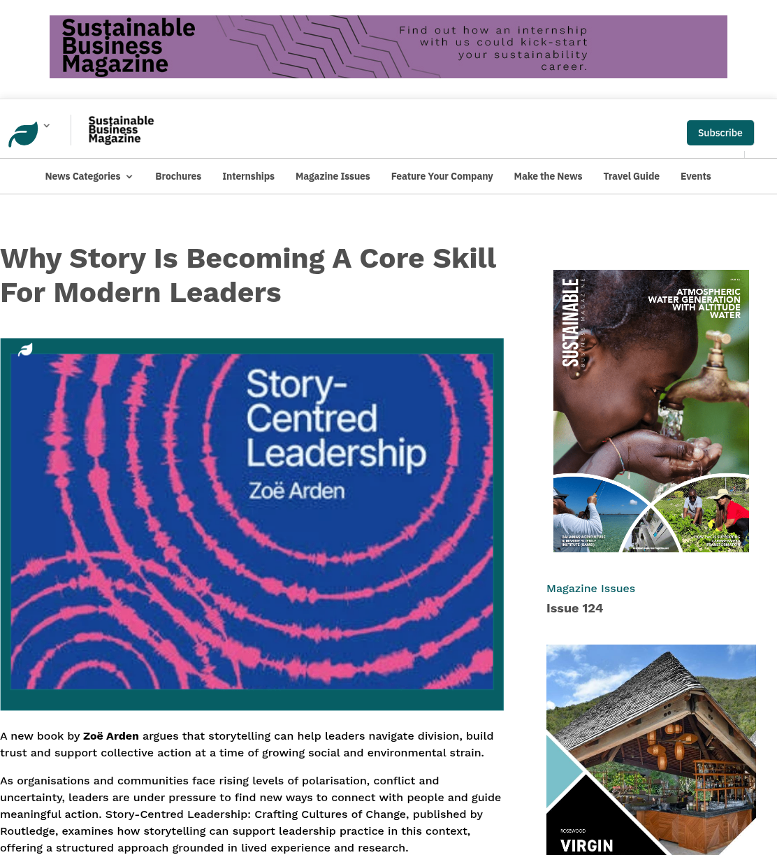 Media Conversations and coverage Must-reads for women in tech: March book round-upShe can code How storytelling can help drive action towards a sustainable futureBusinessGreen Why Hearing Different Voices in Our Business Stories Matters More Than EverCEOWORLD Magazine Crafting culture of change with guest Zoë ArdenROI of DEI From fiction to pop culture and podcasts: Why are we so obsessed with stories?Belfast Telegraph In an A.I.-Driven World, Storytelling Is Becoming Leadership’s Most Critical SkillObserver Storytelling’s power in AI ageMarketing.ie Story-Centred Leadership by Zoë ArdenEliteBusiness Sustainability superheroes: simply avoiding the echo chamberPR Moment Story-Centred Leadership with Zoë ArdenThe Extraordinary Business Book Club Businesses hiring storytellers to ‘cut through the AI slop’The Times Why transparency is the new leadership currency—and how to master the skillFast Company Why Story Is Becoming A Core Skill For Modern LeadersSustainable Business Magazine Don’t Become A Political Referee: How To Lead A Polarized TeamForbes Can you still say ‘climate’? How to shape effective sustainability stories in 2026edie How to Use Storytelling to Retain and Engage Top TalentThe European Business Review Storytelling – the essential skill every HR professional needsHR News Story-Centred Leadership: Crafting Cultures of ChangeNewstalk 5 Leadership Storytelling Insights That Drive Real Behavior ChangeHR Future